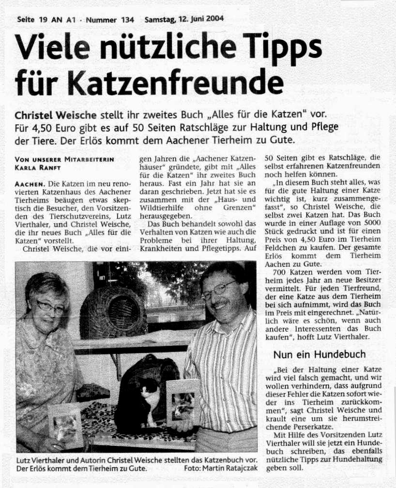 Tierschutzverein für Aachen und Umgebung e.V. Das Büchlein kostet 7,50 Euro, zzgl. 1,44 Euro Versandkosten.