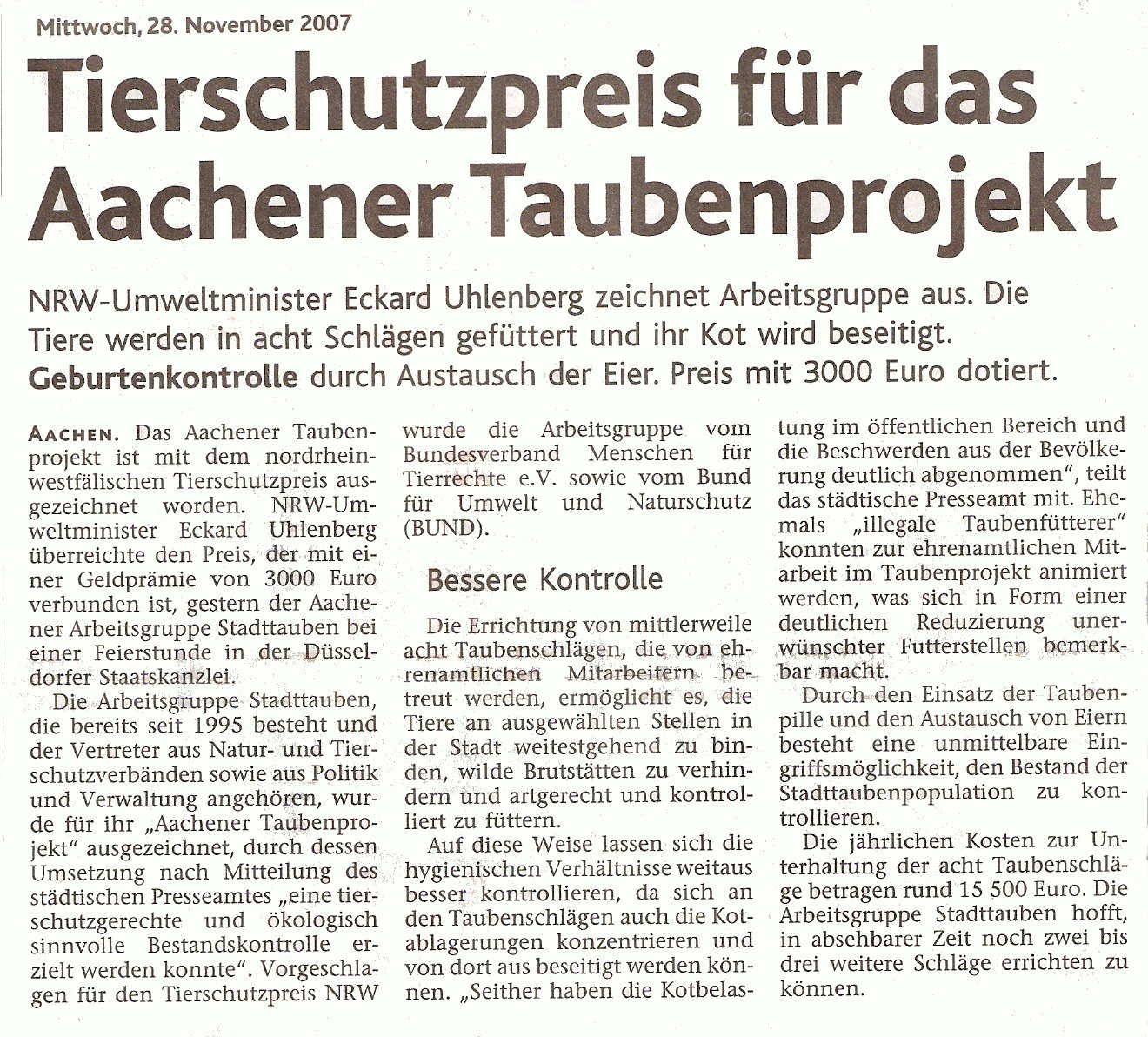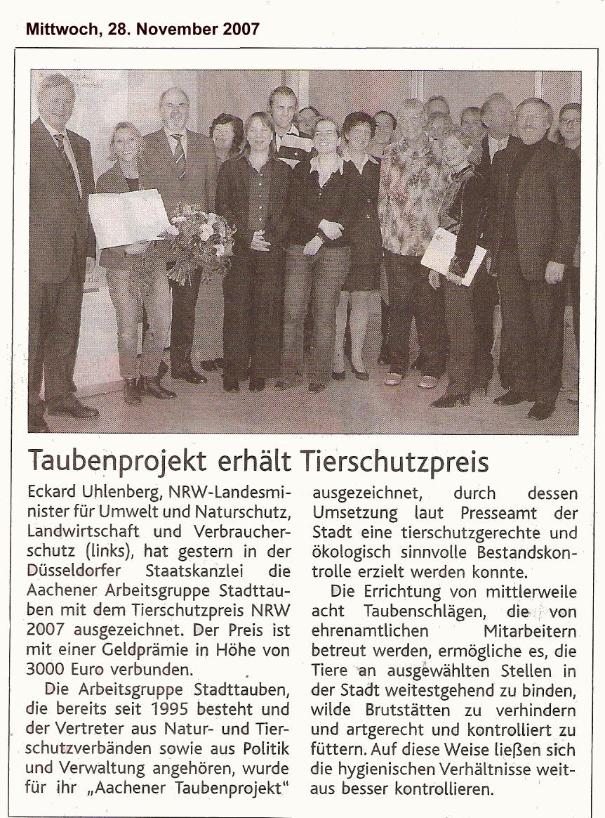 Ausgezeichnetes Taubenprojekt (29.11.2007 - 09:52 Uhr):