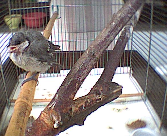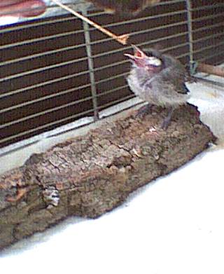 die kleine Meise mußte in einen größeren Käfig, in dem sie auch ein bisschen