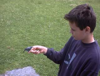 Am nächsten Morgen habe ich dann aber Aufzuchtfutter für Insektenfresser besorgt, was aber für den Winzling zu Pulver gesiebt werden mußte. Dieses Pulver mit etwas Katzenfutter zu einem Brei vermischt mußte jede halbe Stunde Tag und Nacht mit einem abgeflachten Streichholz in stecknadelkopfgroßen Portionen in den winzigen weit aufgesperrten Schnabel „befördert“ werden. Nach etwa einer Woche waren dem Vogel so viele Federn gewachsen, daß er die Wärmelampe nicht mehr brauchte, und ohne Licht, war damit die Nachtfütterung beendet, und ich konnte endlich mein Schlafdefizit nachholen. Der kleine Vogel wuchs und entwickelte sich schnell und wurde zu einer lebhaften, verspielten, zutraulichen – und vor allem zu einer sehr menschenbezogenen kleinen Meise, was dieser später zum Verhängnis werden sollte.
